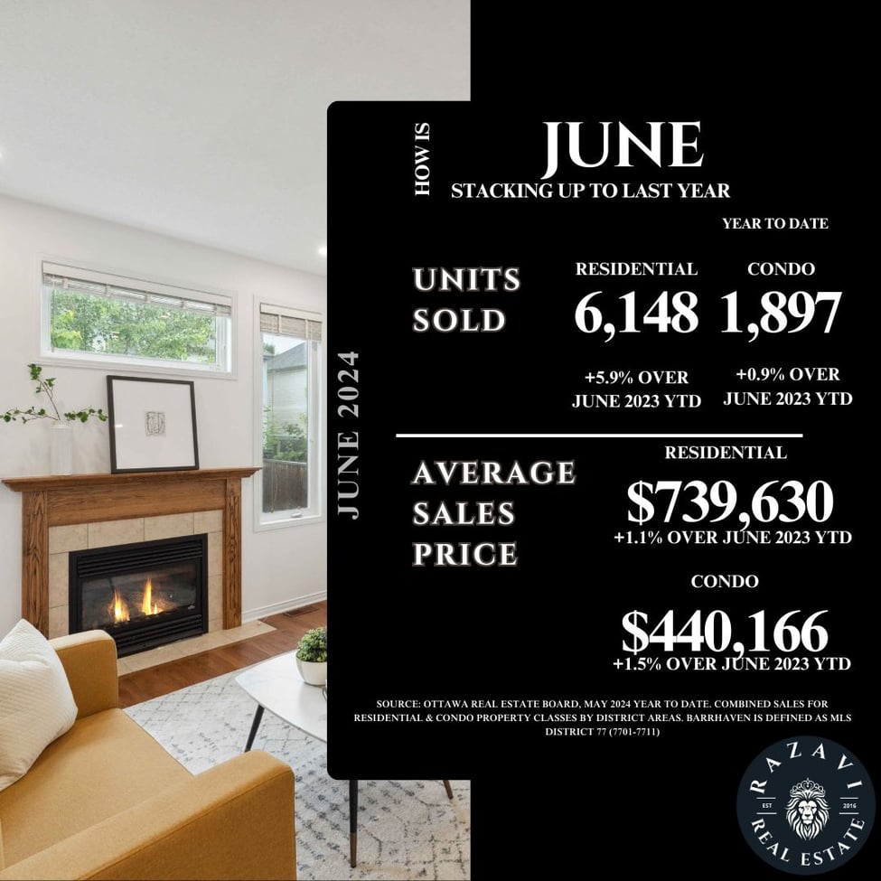 The Ottawa real estate market continues to show strength and resilience as we progress through 2024. The latest statistics for June 2024 provide an insightful glimpse into the market dynamics and trends, comparing the current performance with that of the previous year. Here's a detailed analysis of the residential and condo property market in Ottawa, covering units sold and average sales prices.
